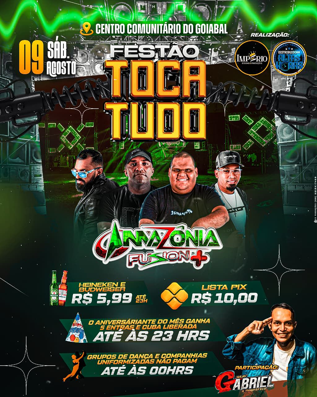 A contagem regressiva, neste sábado, 6 de setembro, o Parque de Exposições da Fazendinha vai tremer com o Festival das Aparelhagens, um dos momentos mais esperados da 54ª Expofeira do Amapá. Serão nove superpotências de som reunidas em uma única noite: Amazônia Fusion, Trepidante, Hipersom, Gibsom, Transamérica, Matrix, Crocolive, Tropical